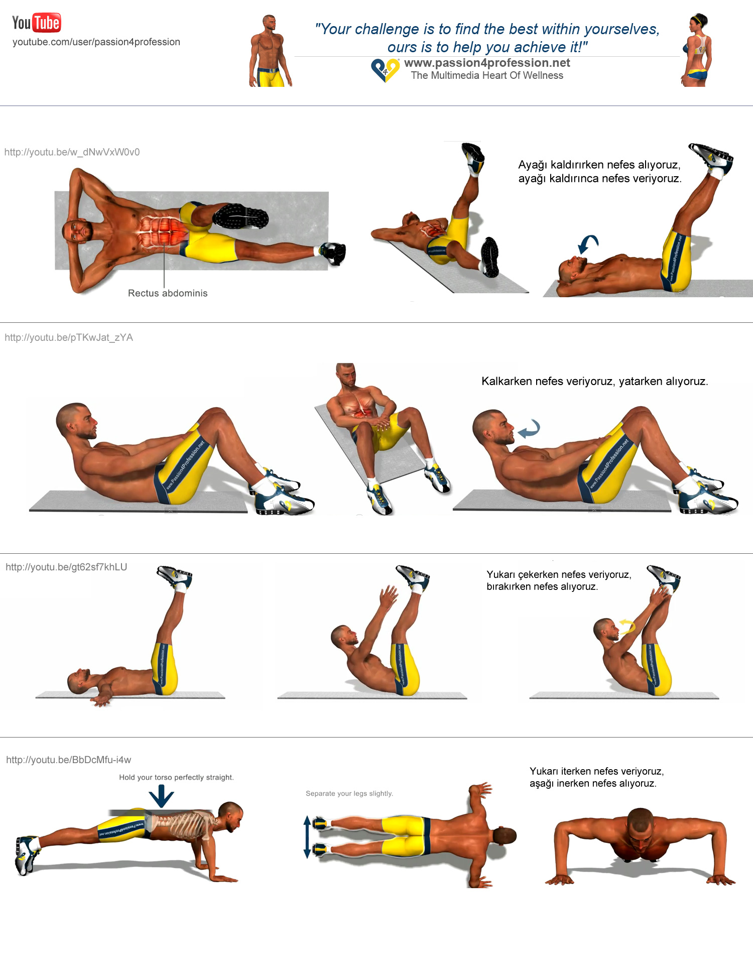 Neyse baktım ki evde internet yok, kendimce bir grup hareketi fotoğraflarla bir araya getirdim. Belki birilerinin işine yarar diyede bu yazıyı paylaşmak istedim. Bu arada hangi hareketi kaç kere, kaç set yapmak lazım bunları kendinize göre ayarlayabilirsiniz. Esasında profesyonel birinden bu noktada destek almak en sağlıklısı olacaktır. Birde herkes kendinden sorumludur, ben sadece bilgilendirme amaçlı paylaşmak istedim, yok oram sakatlandı, yok lifim koptu ben anlamam :)